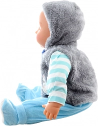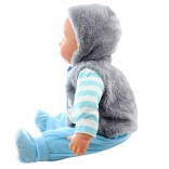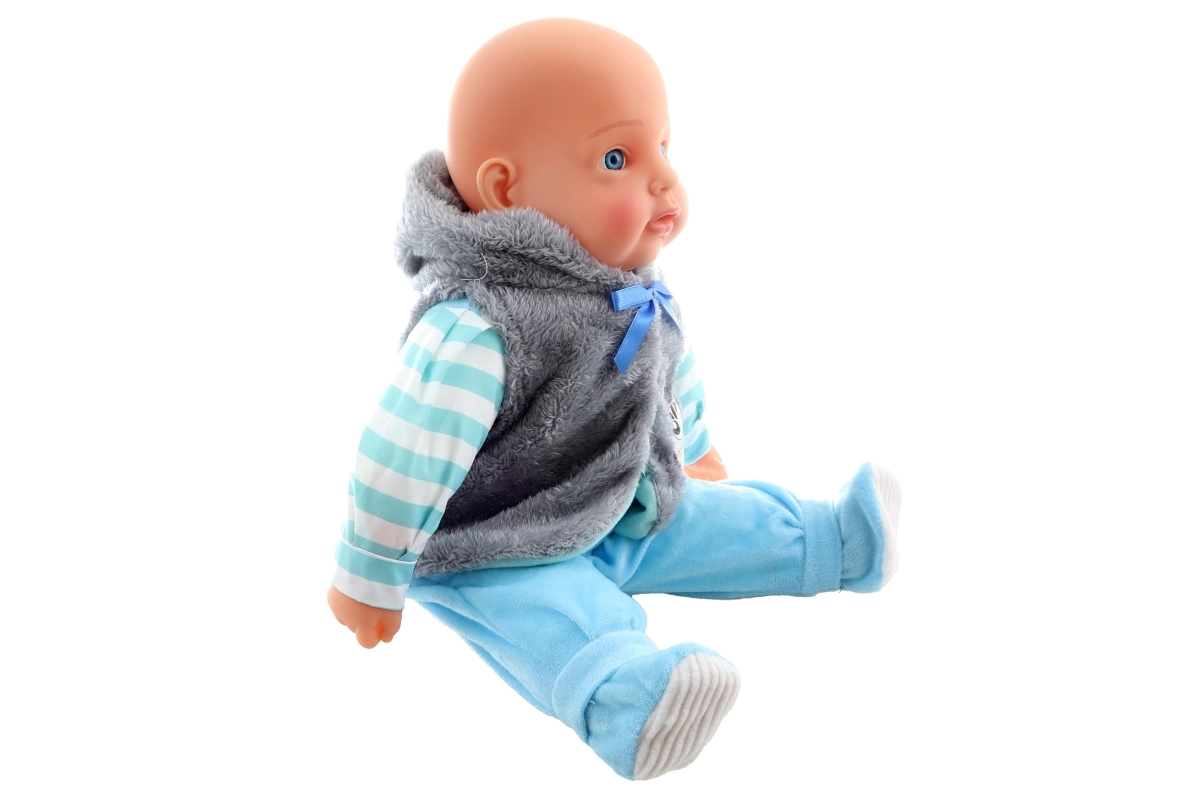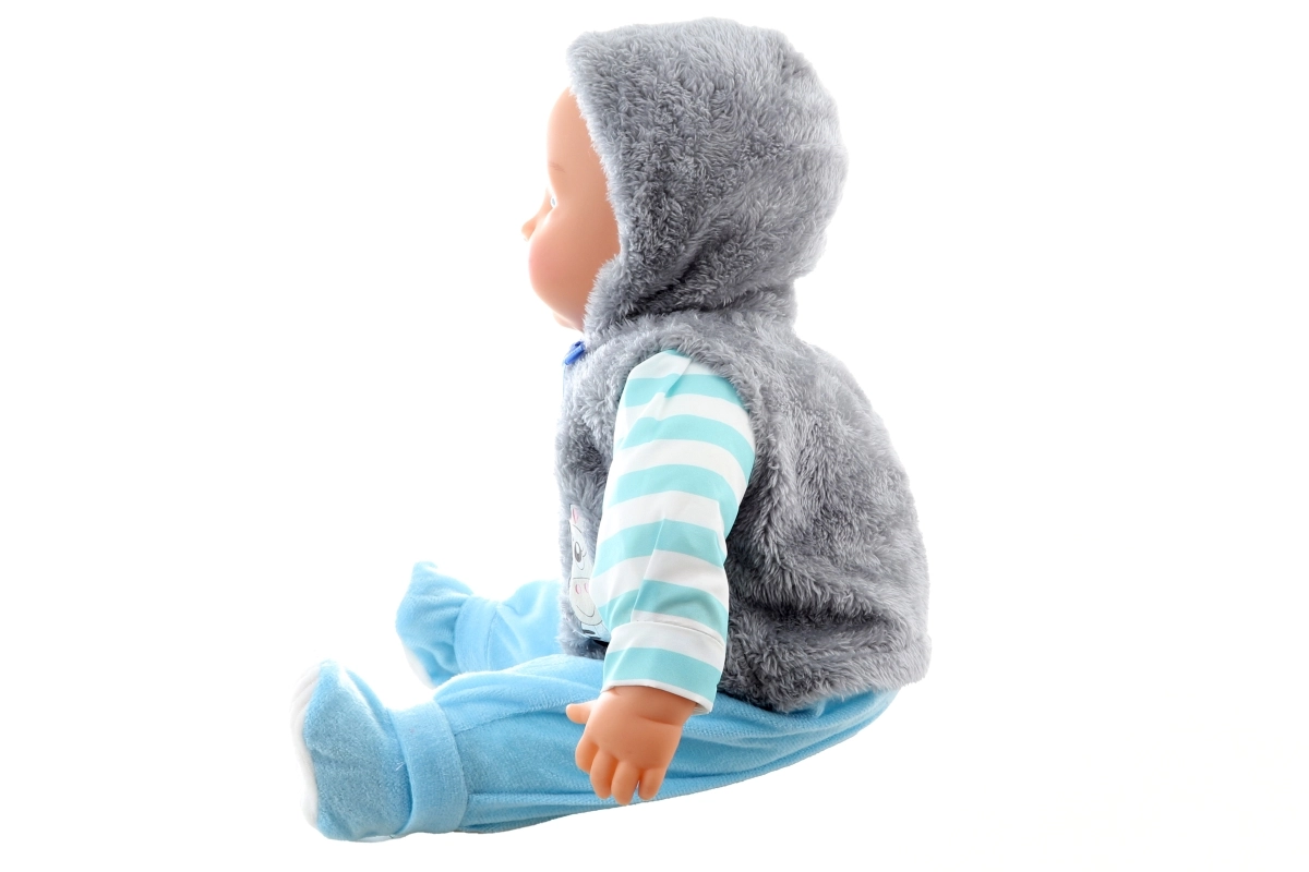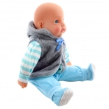 Cette grande poupée – bébé garçon – est conçue pour un jeu de soins authentique. Le corps souple invite aux câlins, tandis que la tête et les extrémités en plastique donnent à la poupée un aspect réaliste. Grâce au t-shirt rayé, au pantalon bleu et au gilet tout doux, elle ressemble à un vrai bébé que les enfants aiment habiller et cajoler.