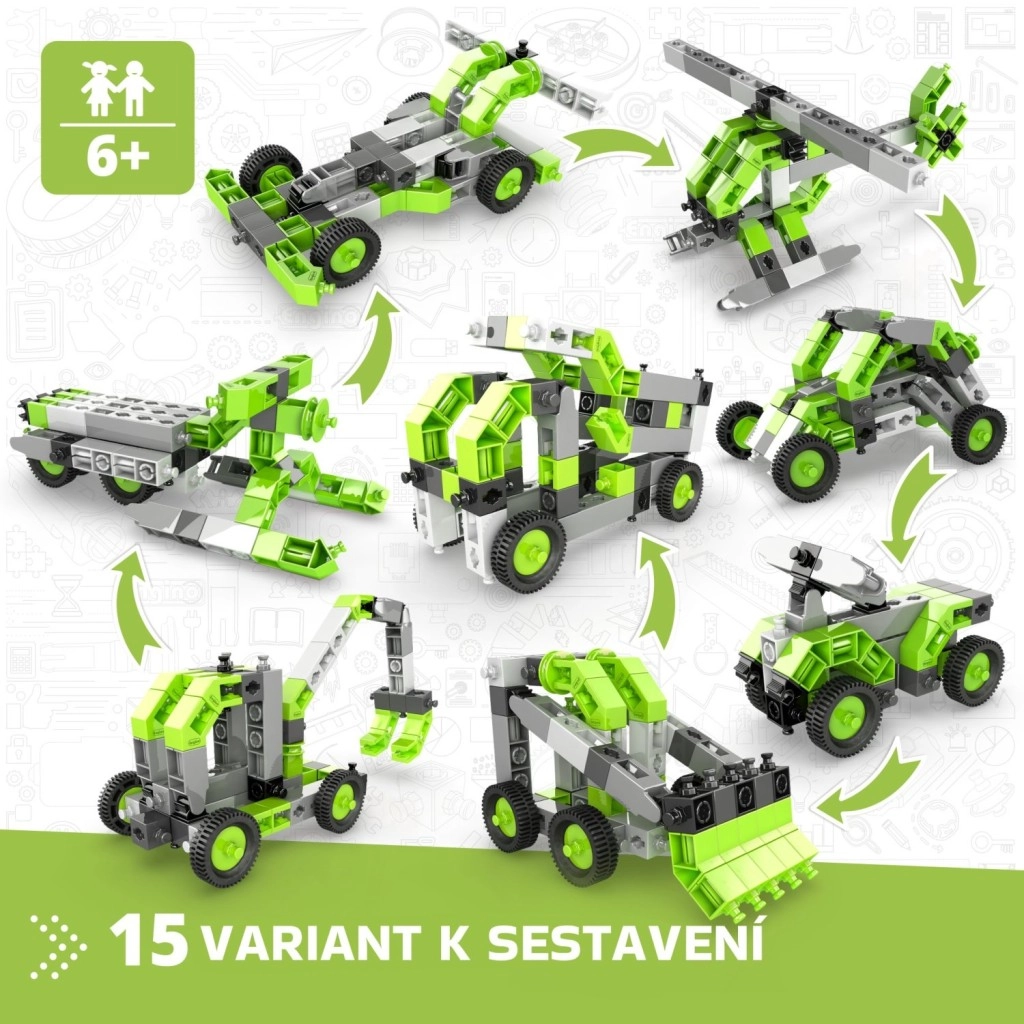 Le kit Engino Creative Builder 15 en 1 apporte aux enfants des heures de jeu et d’apprentissage. Grâce au système intelligent de connecteurs, les enfants transforment facilement une création en une autre et expérimentent différents principes mécaniques. L’application mobile intuitive Engino kidCAD en tchèque affiche les modèles en 3D, ce qui permet de les faire pivoter, de zoomer et de construire pas à pas.