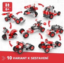 Ce set ENGino Creative Builder offre aux enfants un monde de technique et d’imagination en un. Avec des pièces plastiques robustes en combinaison rouge‑blanc‑gris, ils construisent motos, buggys ou petites voitures et, grâce au système ingénieux de roues et de connexions, les transforment en un clin d’œil en un autre modèle. Une boîte, 10 modèles et des heures infinies d’amusement.