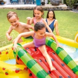 Découvrez le Centre de jeux aquatiques gonflable pour enfants Fruits, l'endroit parfait pour que les enfants s'amusent et se rafraîchissent pendant les chaudes journées d'été.