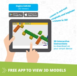 L'application Engino kidCAD® propose des modèles 3D pour une meilleure compréhension et un jeu interactif.