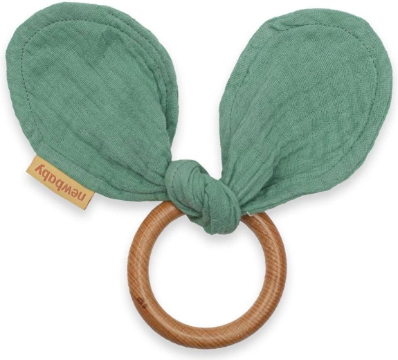 L'anneau de dentition New Baby Ears couleur menthe combine 100% coton biologique et bois de hêtre, garantissant sécurité et matériaux naturels pour votre enfant.