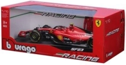 Modèle métallique Bburago officiellement licencié à l’échelle 1:18, représentant fidèlement la monoplace Scuderia Ferrari SF-23 (2023) avec le numéro de course 55. Inclus : figurine de Carlos Sainz, livrée d’équipe authentique et détails précis – idéal pour les collectionneurs et les fans de Formule 1.