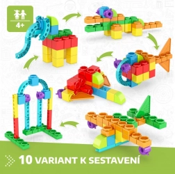 Construisez des animaux, des machines et des véhicules à partir de grandes pièces colorées faciles à assembler. La variété stimule l’imagination et la motricité fine.