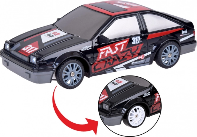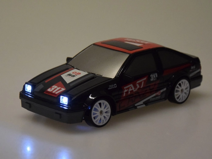 Cette voiture RC de course au style affirmé est conçue pour la vitesse et le drift. Ses proportions réalistes à l’échelle 1:24 et sa construction légère assurent des réactions vives et une excellente maniabilité. La télécommande à 2,4 GHz élimine les interférences et permet un pilotage fluide avant/arrière et virages droite/gauche.