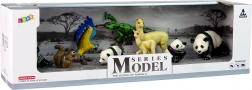 2× panda adulte, 2× bébé panda, 1× perroquet, 1× écureuil, 1× lama, 1× bébé lama, 1× caméléon