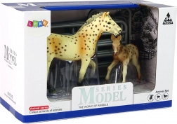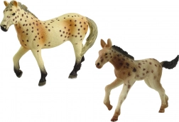 Cheval adulte et poulain au pelage tacheté, détails peints à la main et ressemblance fidèle qui séduisent au premier regard.