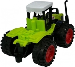 Tracteur robuste en plastique avec grandes roues et toit contrasté, il ressemble à une vraie machine et tracte facilement toutes les remorques.