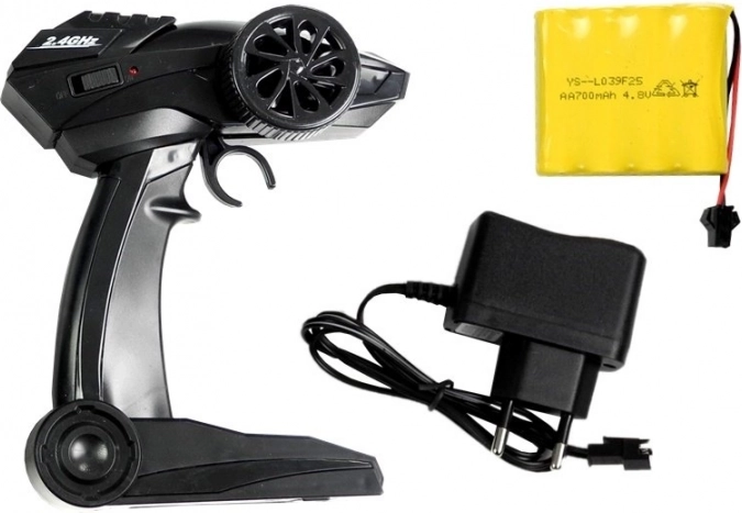- Voiture, télécommande 2,4 GHz, chargeur, jeu de batteries
