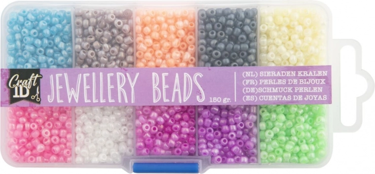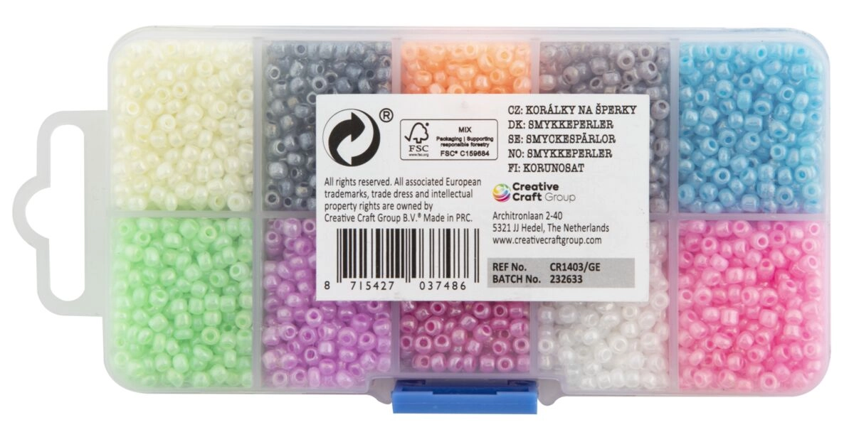 Découvrez un magnifique ensemble de perles avec 10 couleurs différentes, parfaitement rangées dans un organiseur plastique pratique.