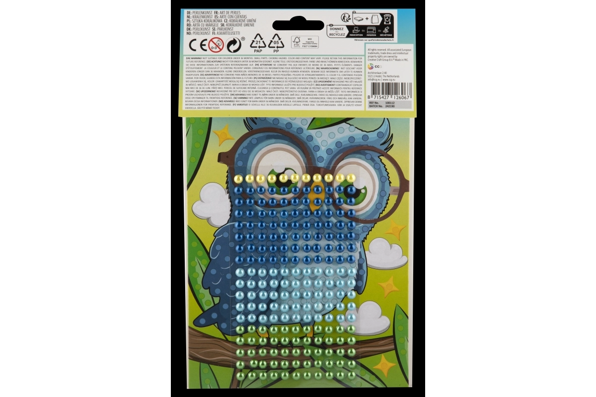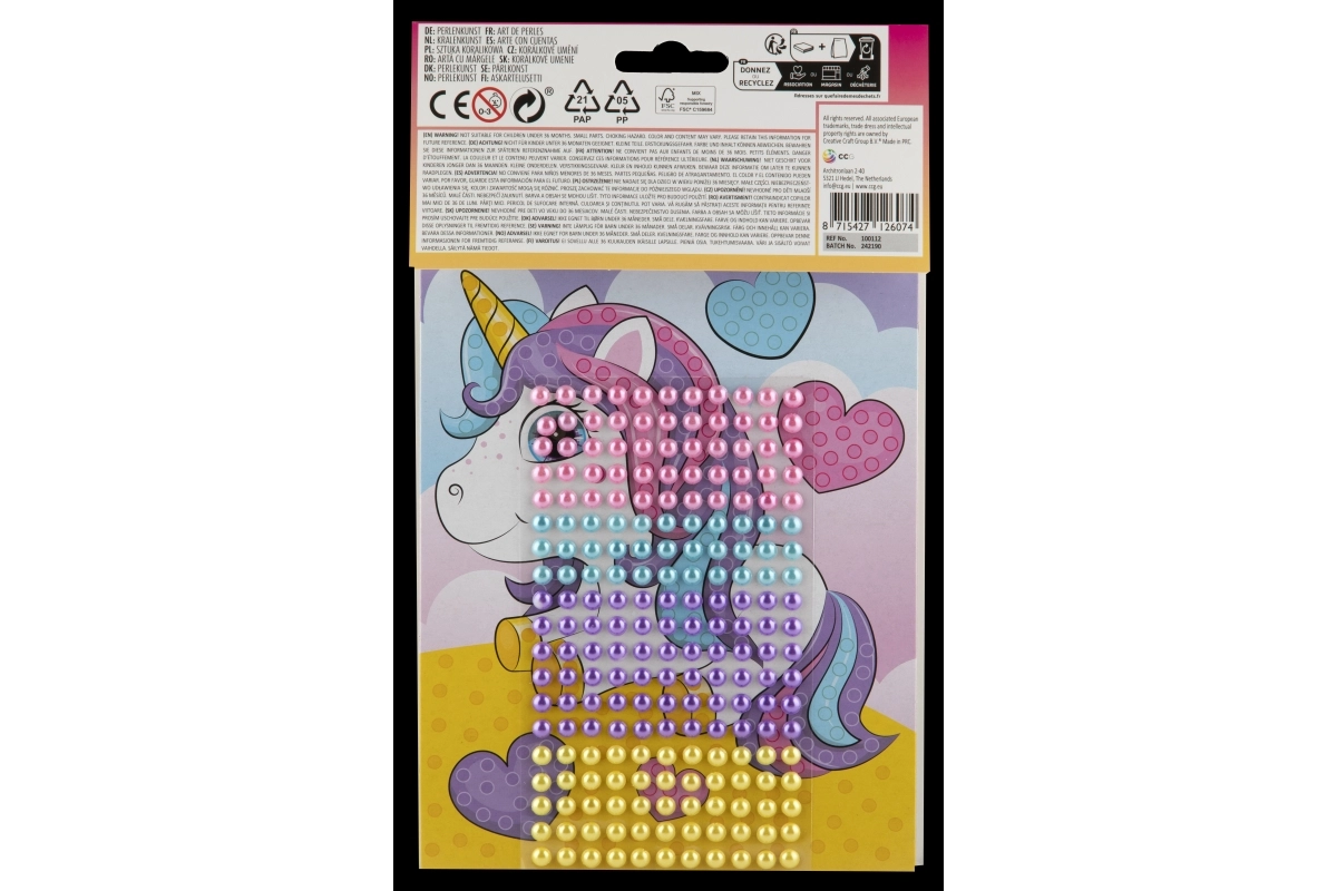 Contenu de l’emballage : support en carton avec image d’animal et ensemble de perles autocollantes. Recommandé pour les enfants à partir de 3 ans sous la supervision d’un adulte.