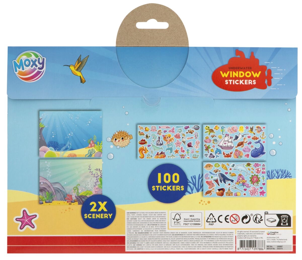 Set créatif avec plus de 100 autocollants de fenêtre et deux scénarios au format 29×21 cm, idéal pour créer des images originales.