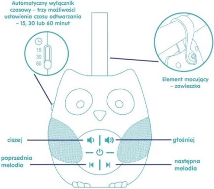 La chouette interactive est le compagnon idéal pour un endormissement paisible et des moments de jeu dans la journée. Les mélodies douces apportent un sentiment de sécurité, tandis que des fonctions pratiques comme la minuterie et le réglage du volume permettent d’adapter l’écoute aux besoins de votre bébé. Sa conception légère et compacte facilite son transport partout.