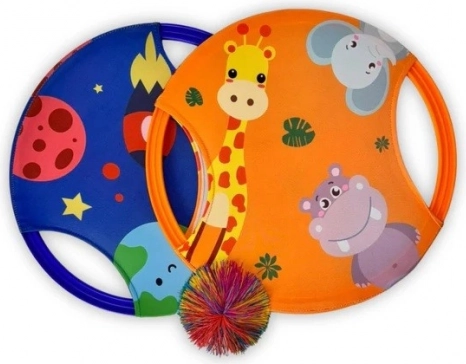 Découvrez un divertissement simple et captivant pour toute la famille. Le set de rebond comprend deux pagaies rondes avec poignées et des balles pom‑pom souples et colorées, faciles à attraper et à renvoyer. Grâce à la surface textile et au cadre plastique léger, le jeu est sûr, intuitif et adapté aux débutants.