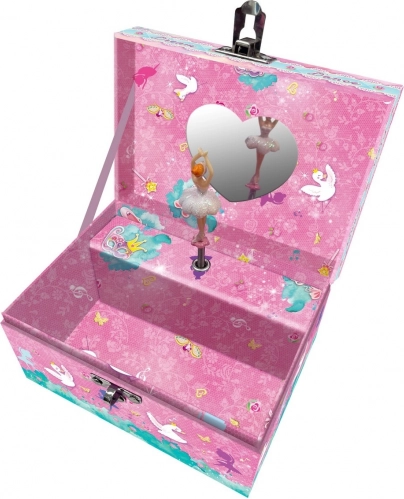 Boîte à musique à bijoux Pecoware Sukienka avec mélodie classique, figurine tournante, miroir et espace de rangement. Remontage mécanique sans piles.