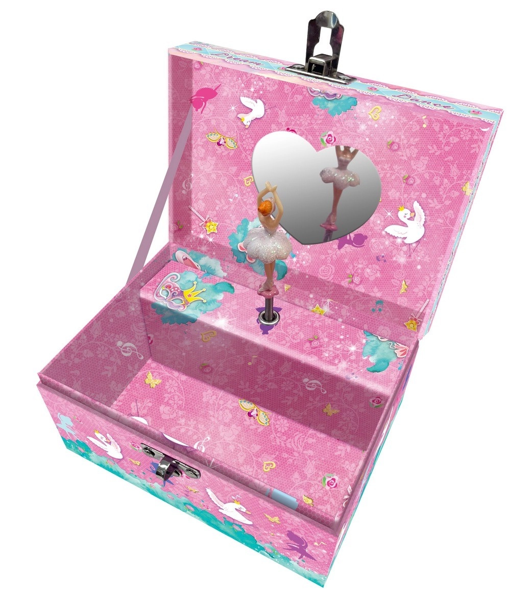 La boîte à musique à bijoux Pecoware Sukienka, magique, est idéale pour les petites coquettes. À l’ouverture, une figurine se met à tourner et une mélodie classique retentit. La boîte comprend un pratique petit miroir et un espace pour ranger de petits trésors. Elle fonctionne par remontage mécanique – sans piles.