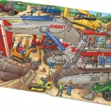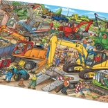 Ce grand imagier mène les jeunes lecteurs dans l’animation d’un chantier où travaillent différentes machines de construction – de la pelleteuse rouge à double pneumatique à la chargeuse verte sur pneus, jusqu’à l’excavatrice jaune sur chenilles. Des scènes colorées et claires éveillent la curiosité et développent la motricité fine et la pensée logique.