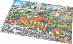 Découvrez le monde fascinant du chemin de fer avec ce grand livre illustré pour enfants. Il propose des illustrations détaillées de locomotives, wagons, voies et gares, des histoires amusantes à chaque page et une foule de pistes pour inventer des récits. Les enfants découvriront qui travaille sur le chemin de fer, voyageront en petit train historique et en train rapide moderne et vivront un trajet à travers des tunnels, sur des ponts, de jour comme de nuit.