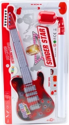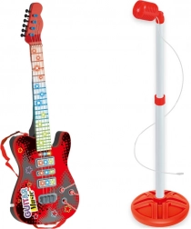 Lancez un spectacle musical à la maison ! Cette guitare électrique réaliste pour enfants de couleur rouge, avec trépied et microphone à piles, offre des effets lumineux, différentes mélodies et modes et favorise la créativité et la coordination. Idéale pour les petits chanteurs et guitaristes dès 3 ans.