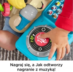 Votre enfant peut diriger la fête avec le jouet interactif Jak lettres et mots de Fisher-Price. Quand le petit DJ appuie sur l’un des 26 boutons-lettres de la console DJ ou fait tourner le plateau, le microphone s’illumine au rythme de chansons joyeuses, de sons et de phrases sur les lettres et les premiers mots. Les enfants peuvent enregistrer des messages amusants et DJ Jak les remixera en une chanson originale !