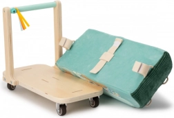 La conception pratique combine une base en bois robuste et une assise textile confortable à surface lavable. La pochette amovible accueille les petits objets pour la route et, quand les enfants grandissent, il suffit d’ôter l’assise pour la transformer en pouf moelleux pour se reposer.