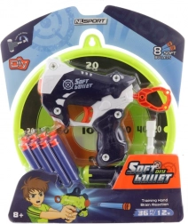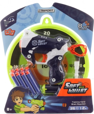 Le coffret comprend un pistolet, une cible, 8 projectiles en mousse et un tournevis – tout le nécessaire pour un plaisir immédiat.