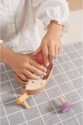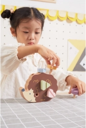 L’hérisson en bois permet aux enfants d’exercer leur motricité fine grâce à des vis de différentes couleurs et formes.