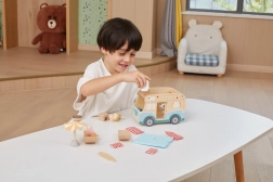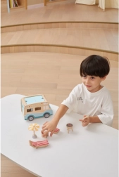 Le camping-car est fabriqué en bois de qualité, garantissant une longue durée de vie et la sécurité des enfants.