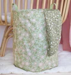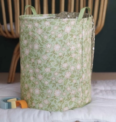 Décorez votre intérieur avec ce panier au magnifique motif floral sur un fond vert sauge.