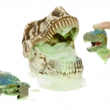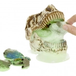Verse de l’eau dans le crâne du dinosaure et observe la mousse verdâtre qui sort des orifices – un début parfait pour jouer et découvrir les pièces cachées.