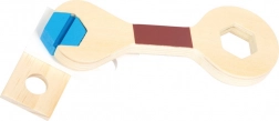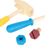 Le marteau, le tournevis, la clé et la pince en bois sont conçus pour les petites mains. Ils encouragent l’adresse naturelle et l’imitation des travaux réels.