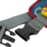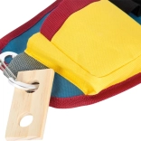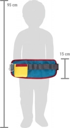 La ceinture en textile, dotée d’une boucle robuste et d’un anneau en D, s’adapte facilement à la morphologie de l’enfant. Les passants et la poche maintiennent les outils en place même en mouvement.