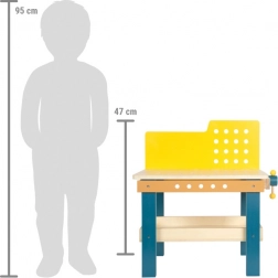 Découvrez le poste de travail idéal pour les jeunes bricoleurs. Cet établi en bois stable SMALL FOOT Workshop offre des éléments réalistes comme un étau intégré, un plateau de travail perforé et un panneau perforé jaune pour fixer les pièces. Les enfants peuvent marteler, couper et visser tout en développant leur habileté manuelle et leur pensée technique.