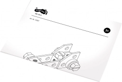 L’emballage comprend 3 outils en bois (marteau, clé, tournevis) et de nombreux accessoires : 7 vis, 5 écrous, 2 grandes plaques perforées, 2 petites, 1 moyenne, 2 en forme de losange, 2 rectangulaires, 4 rondelles épaisses, 4 fines et 2 engrenages.