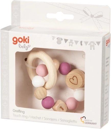 Anneau sensoriel et moteur Goki en forme de cœur est un accessoire idéal pour les petites mains, qui soutient leur développement moteur et le réflexe de préhension. Il offre une finition sûre et de qualité avec des formes douces et des couleurs tendance.