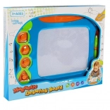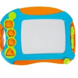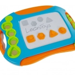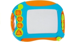 Le set comprend un grand tableau avec poignée pratique, un stylet magnétique et quatre tampons en formes géométriques. Sa conception en plastique résistant, ses couleurs agréables et ses détails bien pensés en font un jouet idéal à la maison, à la maternelle et en voyage.