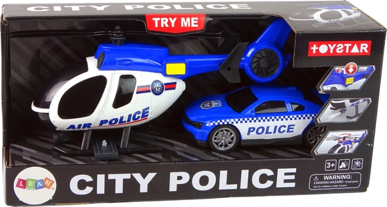 Mettez-vous dans la peau de la police et partez en mission ! Le grand hélicoptère, avec des pales que l’on peut faire tourner à la main (envergure jusqu’à 20 cm), dispose d’un bouton pour les effets lumineux et sonores de démarrage et de vol, rendant le jeu encore plus réaliste. La voiture de police, avec ses marquages caractéristiques, ses vitres teintées et ses pneus en caoutchouc, file à grande vitesse sur une surface plane. L’ensemble est fabriqué en plastique léger et résistant et est sûr pour les enfants.