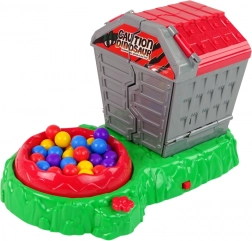 Le mécanisme central fait tourner la surface de jeu tandis que les joueurs, à l’aide de pinces, attrapent les bons œufs selon la carte. Celui qui a le plus de points gagne.