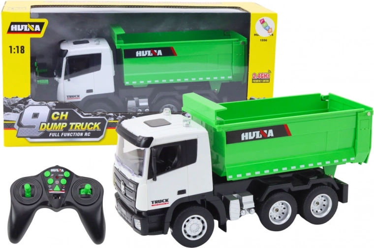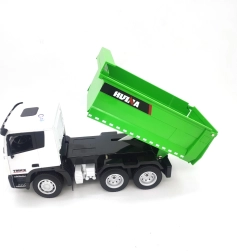 Camion vert télécommandé à l’échelle 1:18 offrant un divertissement réaliste sur le chantier pour chaque petit constructeur. Ce modèle permet de transporter des matériaux en vrac et des fournitures de construction grâce à la télécommande.