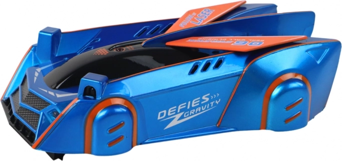 La petite voiture de sport bleue au design futuriste transforme chaque pièce en piste de course. Grâce à son mode antigravité spécial, elle adhère aux murs et au plafond et roule en douceur là où les voitures ordinaires ne peuvent pas. Le contrôle est intuitif : il suffit de viser la lumière LED/laser de la télécommande et le véhicule suivit instantanément le point lumineux.