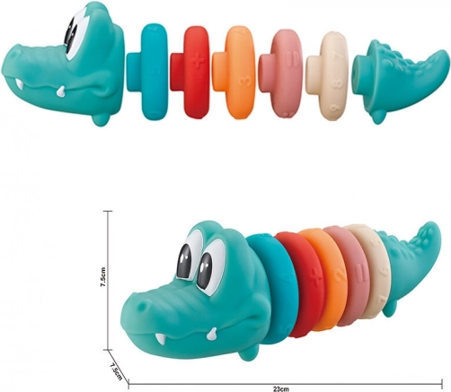 Cette adorable pyramide avec tête de crocodile apporte à la fois amusement et apprentissage. Les anneaux colorés de tailles différentes, ornés de chiffres en relief, incitent au tri, à l’enfilage et au comptage, développant naturellement la dextérité et la pensée logique. Sa conception souple est agréable au toucher et douce pour les petites mains.