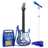 Cette guitare électrique bleue pour enfants est faite pour les petites stars du rock ! Fabriquée en plastique de qualité, elle offre un design réaliste avec des cordes métalliques et une prise en main facile grâce à la sangle incluse.