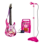 Guitare électrique rose avec microphone et amplificateur, le jouet idéal pour les petits musiciens. Fabriquée dans un matériau de qualité, elle est équipée de cordes métalliques sensibles au toucher qui imitent une véritable guitare.