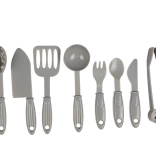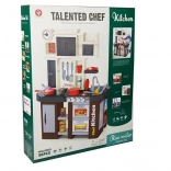Le set comprend de la vaisselle comme une casserole, une poêle et des ustensiles de cuisine, stimulant la créativité et l’invention de recettes personnelles.