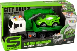 En plus du camion de remorquage, l'ensemble comprend une voiture de sport, prête à être réparée dans votre atelier d'enfants. Les dimensions du camion de remorquage sont de 38 cm x 13 cm x 16 cm, la petite voiture de sport mesure 18 cm x 8 cm x 7 cm. Le jouet est alimenté par trois piles AG13 (incluses dans le paquet) et est destiné aux enfants de plus de 3 ans. Il est conforme aux normes CE et EN 71.