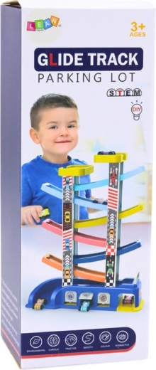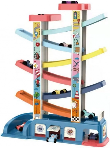 Cette piste de course à glissière transforme chaque petite voiture en un mini bolide. Les enfants placent les voitures sur la rampe supérieure et observent leur descente à toute vitesse à travers les différents niveaux. La palette pastel, visuellement agréable, maintient l’attention, tandis que les dimensions compactes conviennent à la chambre d’enfant comme au coin de jeu.