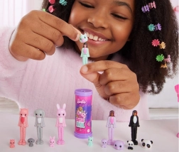 Les mini poupées BARBIE Cutie Reveal offrent la joie de la découverte : retirez la capuche du costume animal et révélez un visage, des cheveux et un style uniques. Chaque figurine possède une taille articulée et peut être exposée sur un socle en forme de cœur. Un mini animal est inclus pour aider les enfants à inventer facilement leurs propres histoires.
