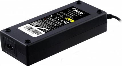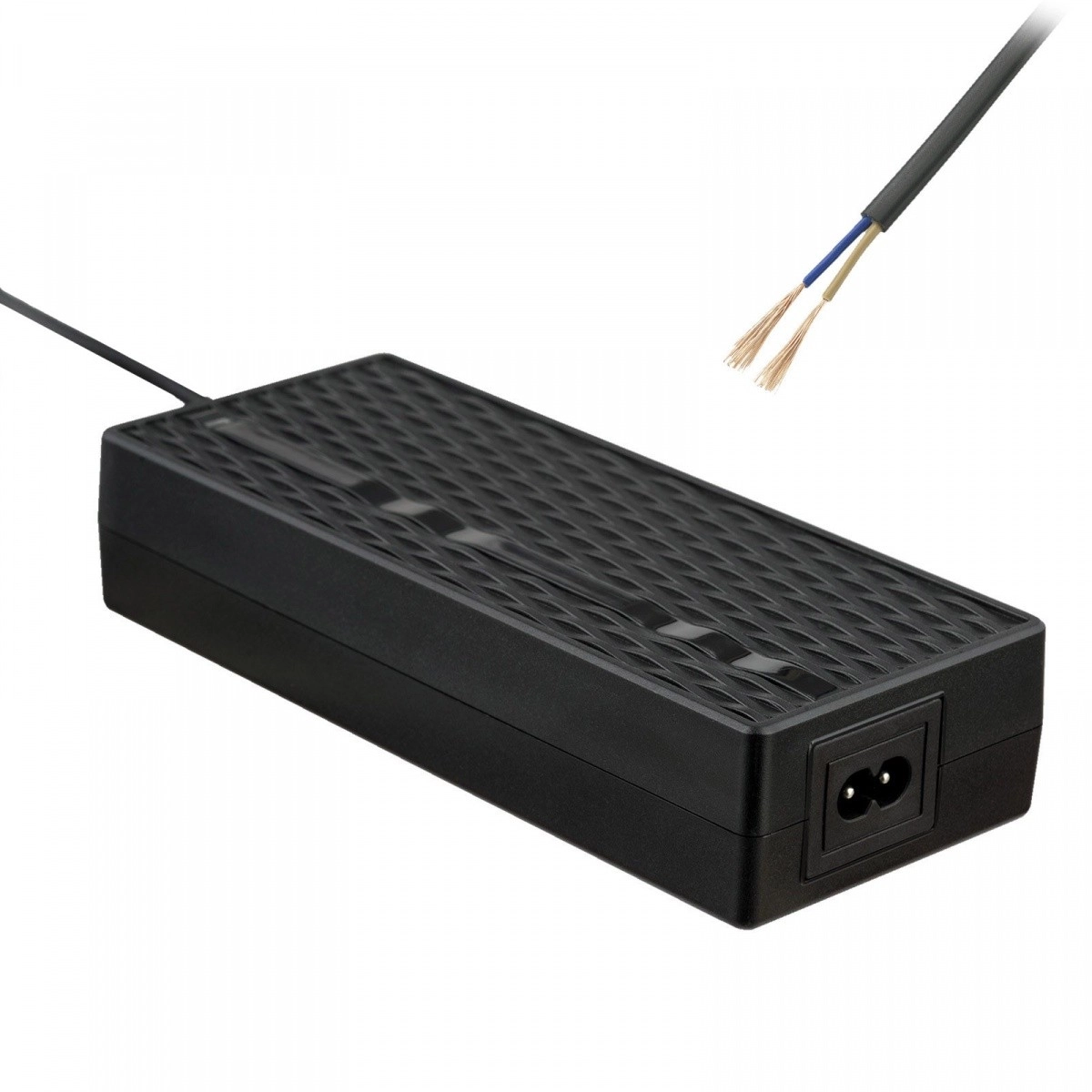 Chargeur universel AKYGA pour vélos et trottinettes électriques 48 V (13s) avec extrémité de câble ouverte pour choisir votre propre connecteur. Offre une haute efficacité >80 %, un câble de sortie de 1 m pratique, une alimentation via IEC C8 et un indicateur LED de charge pratique. Livré dans un emballage écologique.