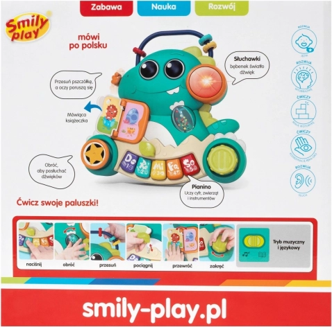 Découvrez le mignon piano parlant Mon Dino – un jouet musical interactif qui favorise le développement du langage, de l’ouïe et de la motricité fine. Le jouet parle polonais et apprend aux enfants les chiffres, les couleurs, les animaux et les instruments de musique tout en jouant et en explorant de nouveaux sons.