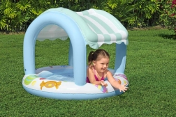 La piscine avec auvent gonflable offre aux enfants de l'ombre et une protection contre les rayons UV, permettant un jeu extérieur plus sûr.